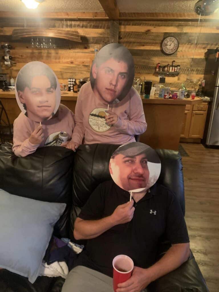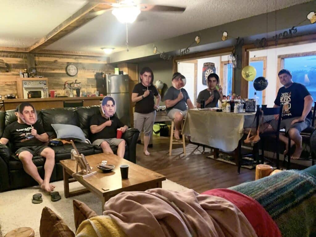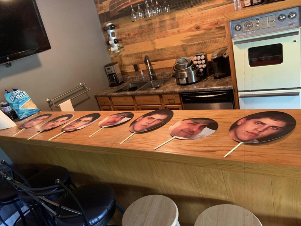 All of the decorations were purchased here and here on Amazon. I found the ideas for the boards and faces on a stick on Pinterest. You can order the faces here, but I printed at a local print shop to save some money. You may not be able to see it but the third sign said, “Holy Smokes, Brian is 40! Light up the Night”, so I purchased cigars for the guys to smoke.