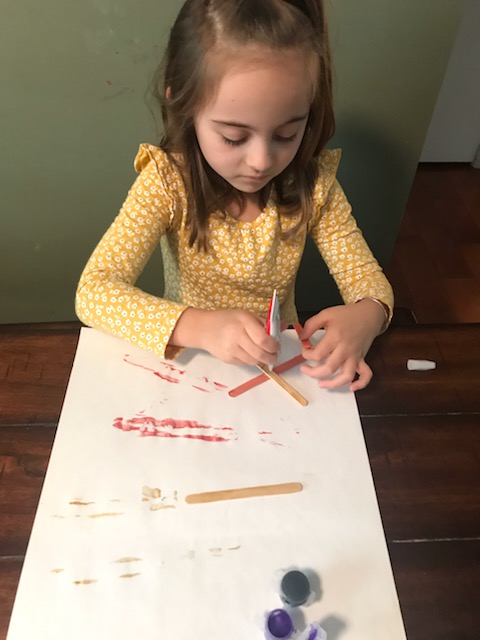 This was another fun one that allows for lots of creativity and is impossible to mess up! The only reason we didn’t involve the twins is because it was nap time! You just want to make sure to let the sticks dry before gluing them together!