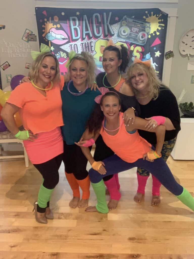 I learned pretty quickly after becoming a mom just how important girlfriends and time away/mom breaks truly hard! Twice a year my girlfriends and I plan a weekend away (local), rent a house and spend our weekends scrapbooking (yes we really scrapbook), chatting, crying, eating, and being together! It is refreshing, productive, and helps me be a better mom and wife. This summer we had a special celebration because two of our girlfriends turned 40! We threw a surprise 80’s theme party!