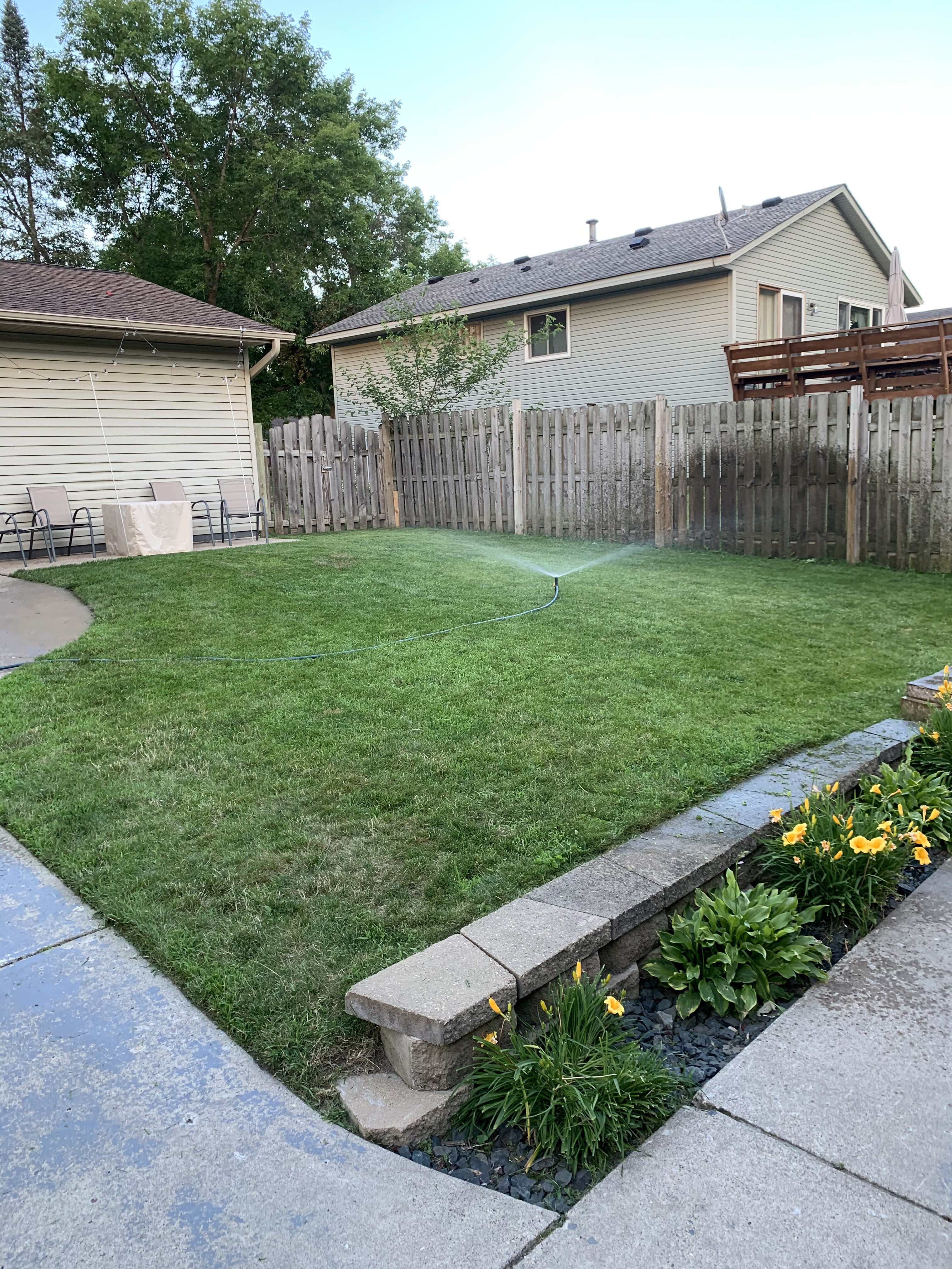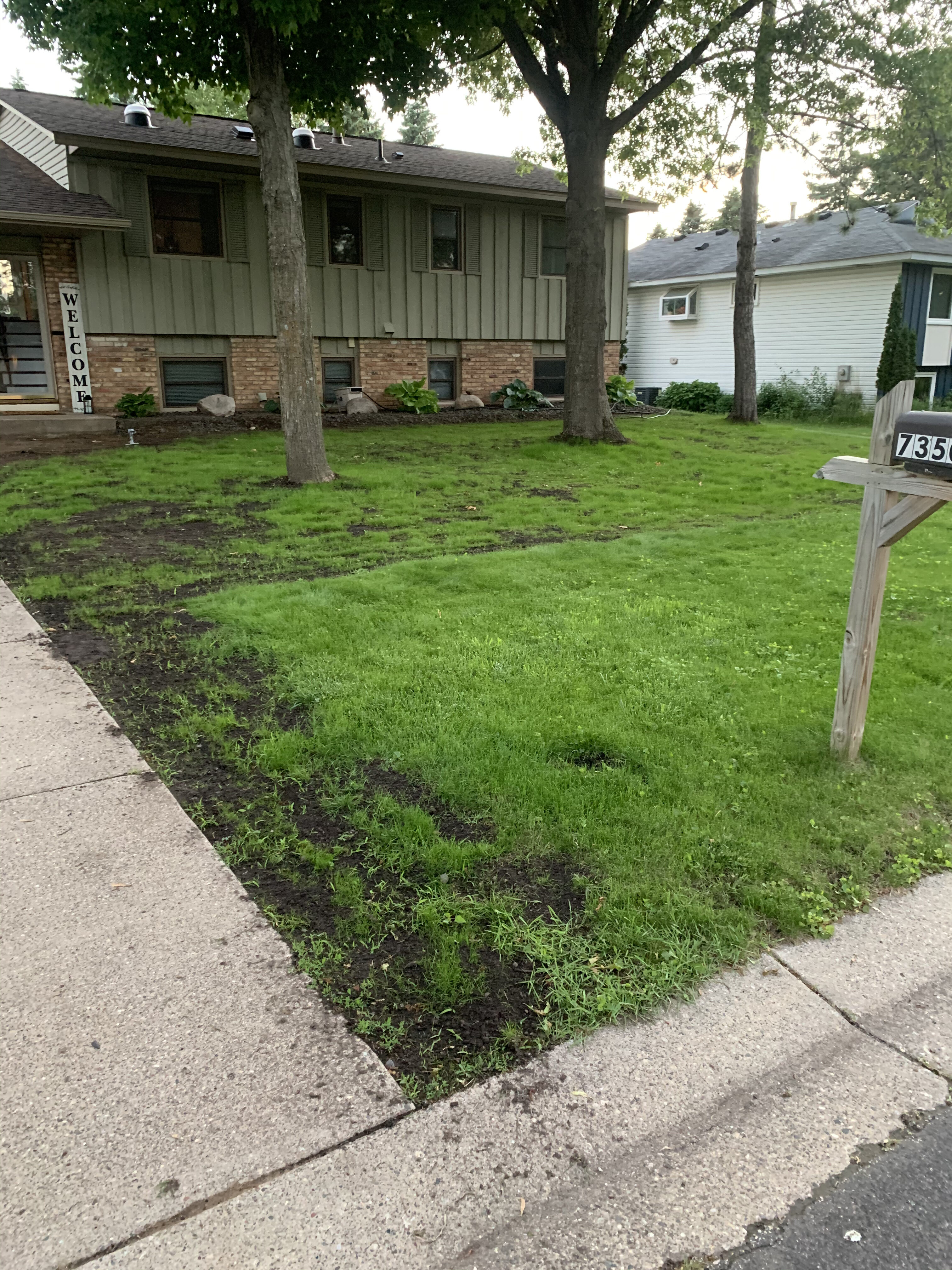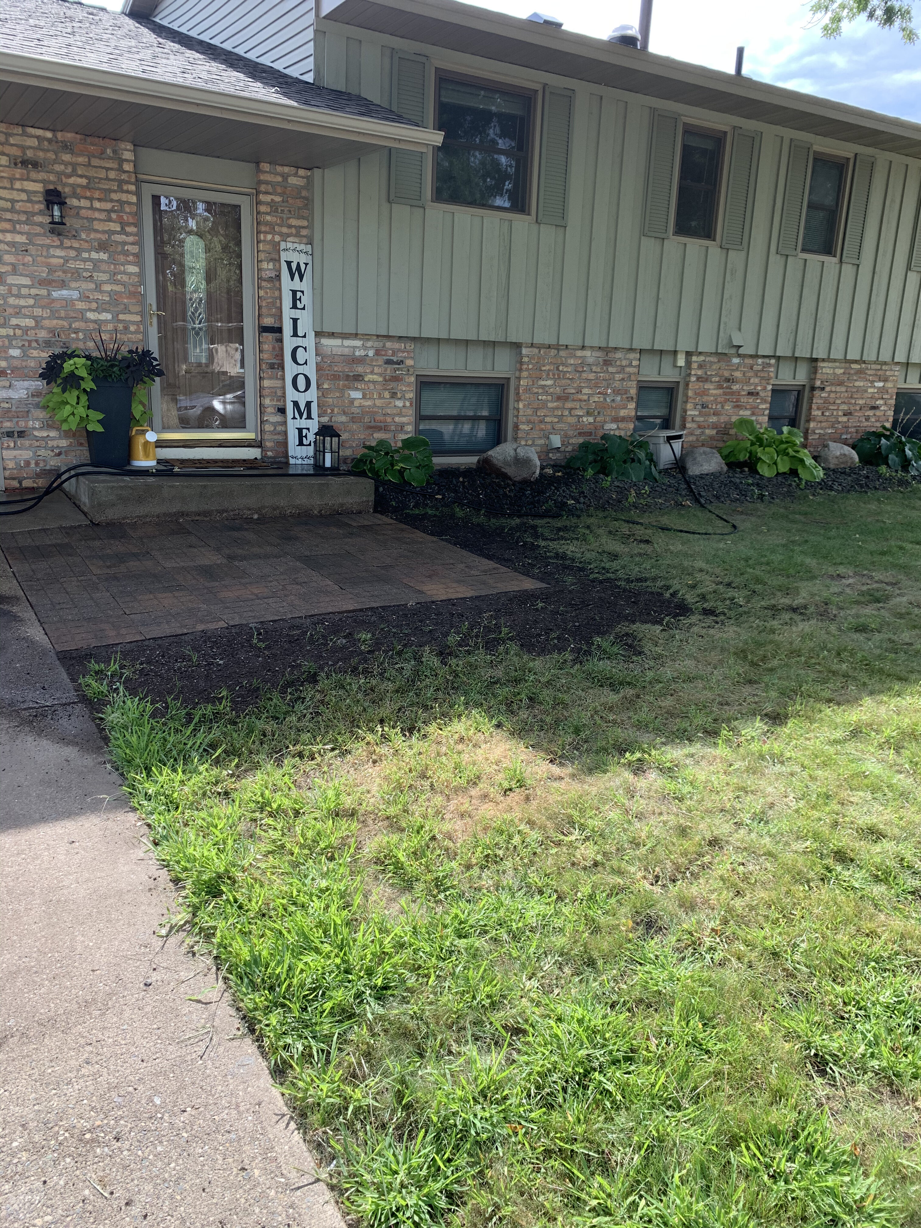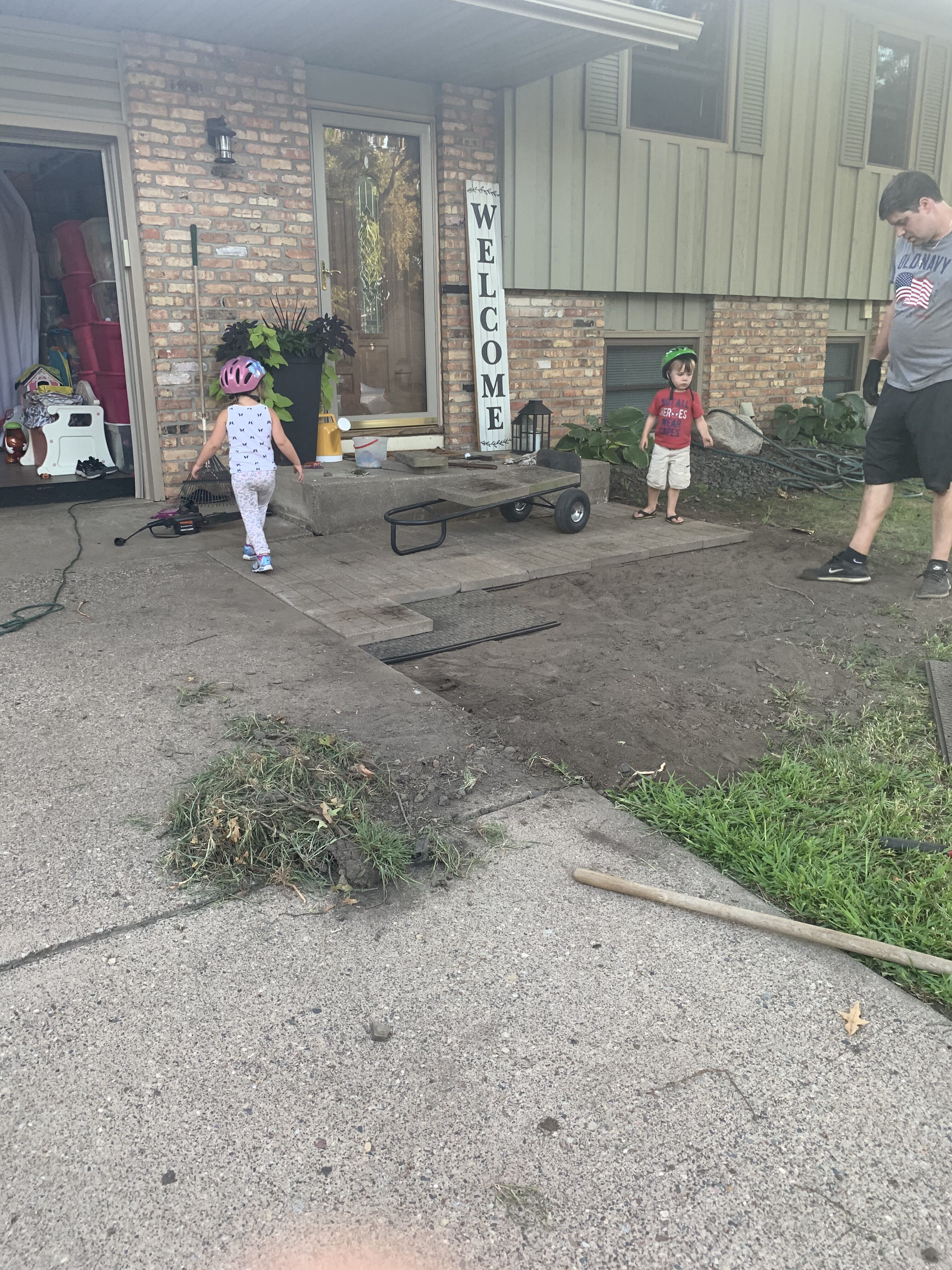 The previous owners had a green thumb and because of the shade in the front yard they decided to plant and create a landscapers dream in the front yard. However, it left for very little space for our kids to run and play, and the upkeep was a lot! So, we replanted all we could salvage, built a retaining wall, created a patio area for our entry and garbage cans, repainted the front of our house, and the entire front yard has a different look!