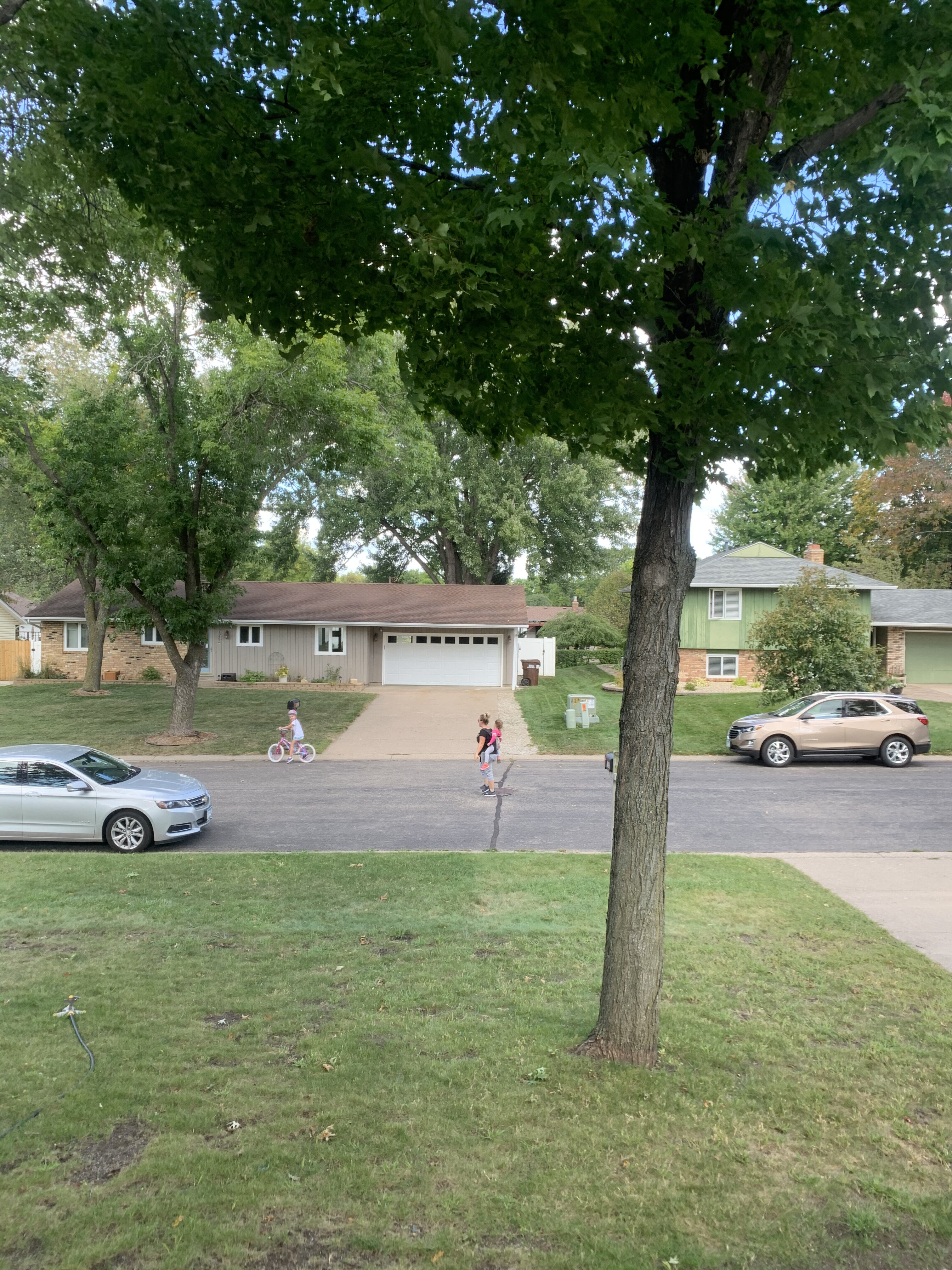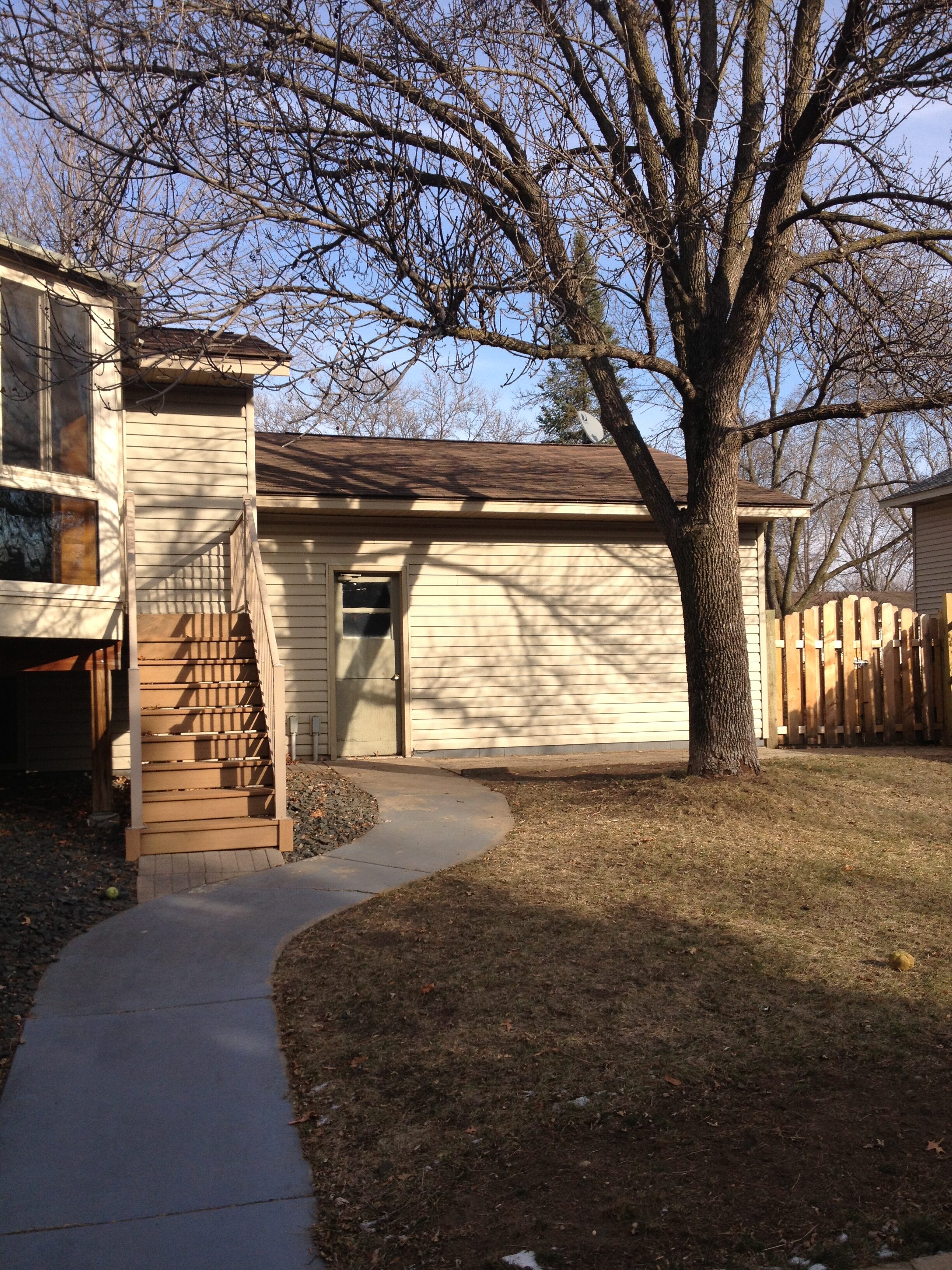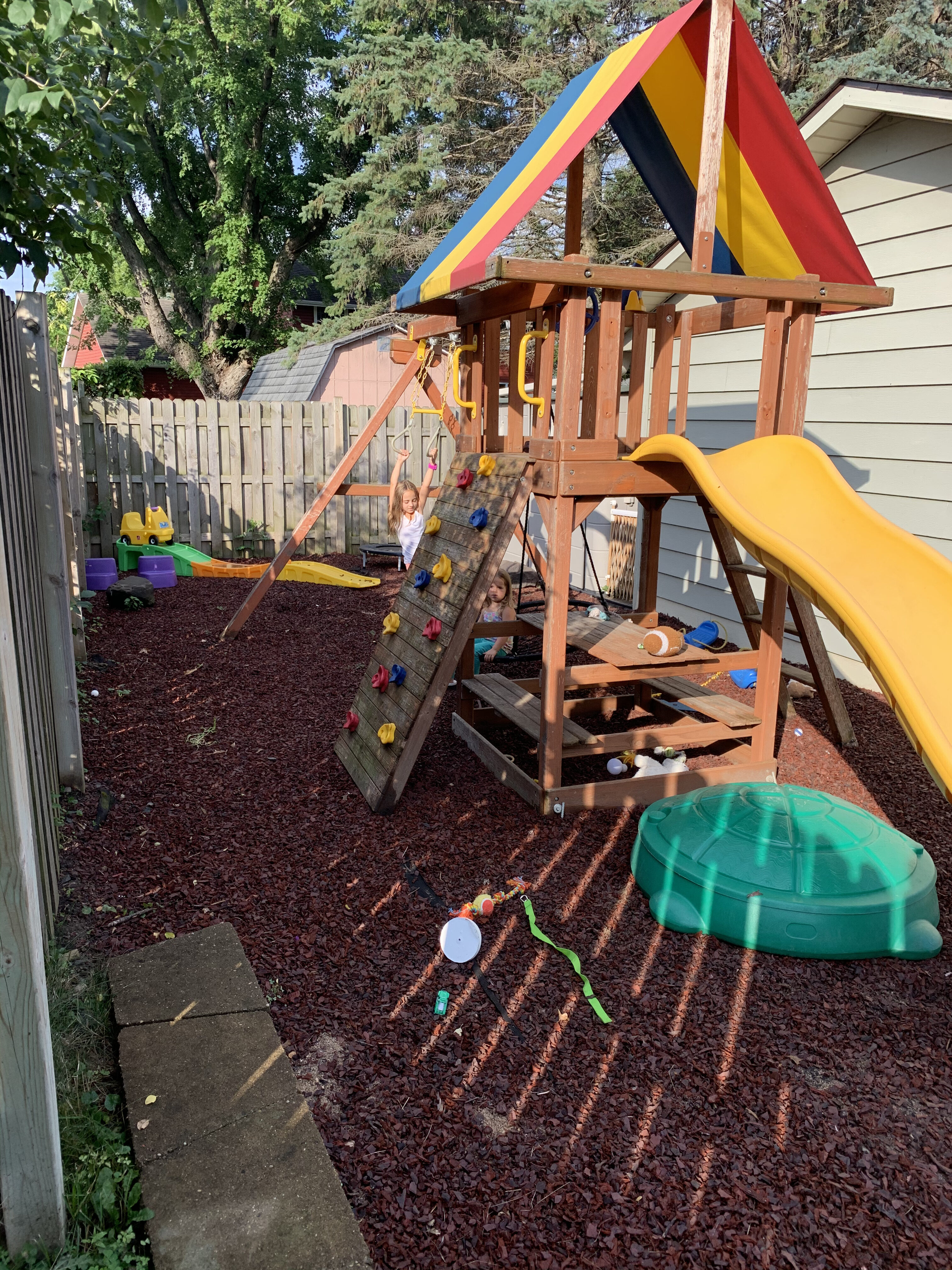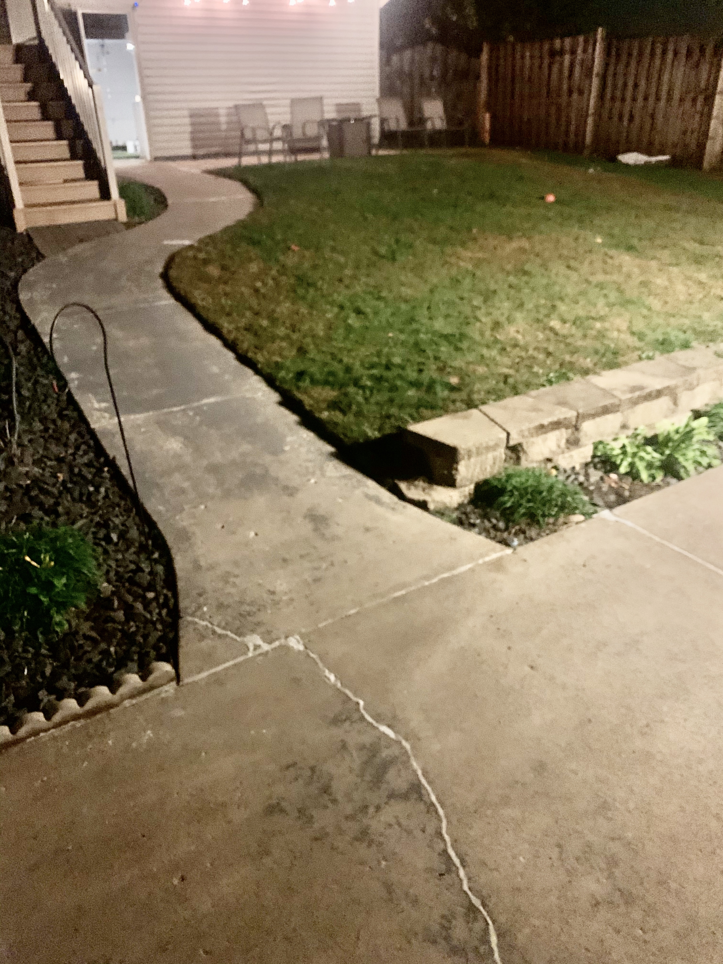 The previous owners had a green thumb and because of the shade in the front yard they decided to plant and create a landscapers dream in the front yard. However, it left for very little space for our kids to run and play, and the upkeep was a lot! So, we replanted all we could salvage, built a retaining wall, created a patio area for our entry and garbage cans, repainted the front of our house, and the entire front yard has a different look!