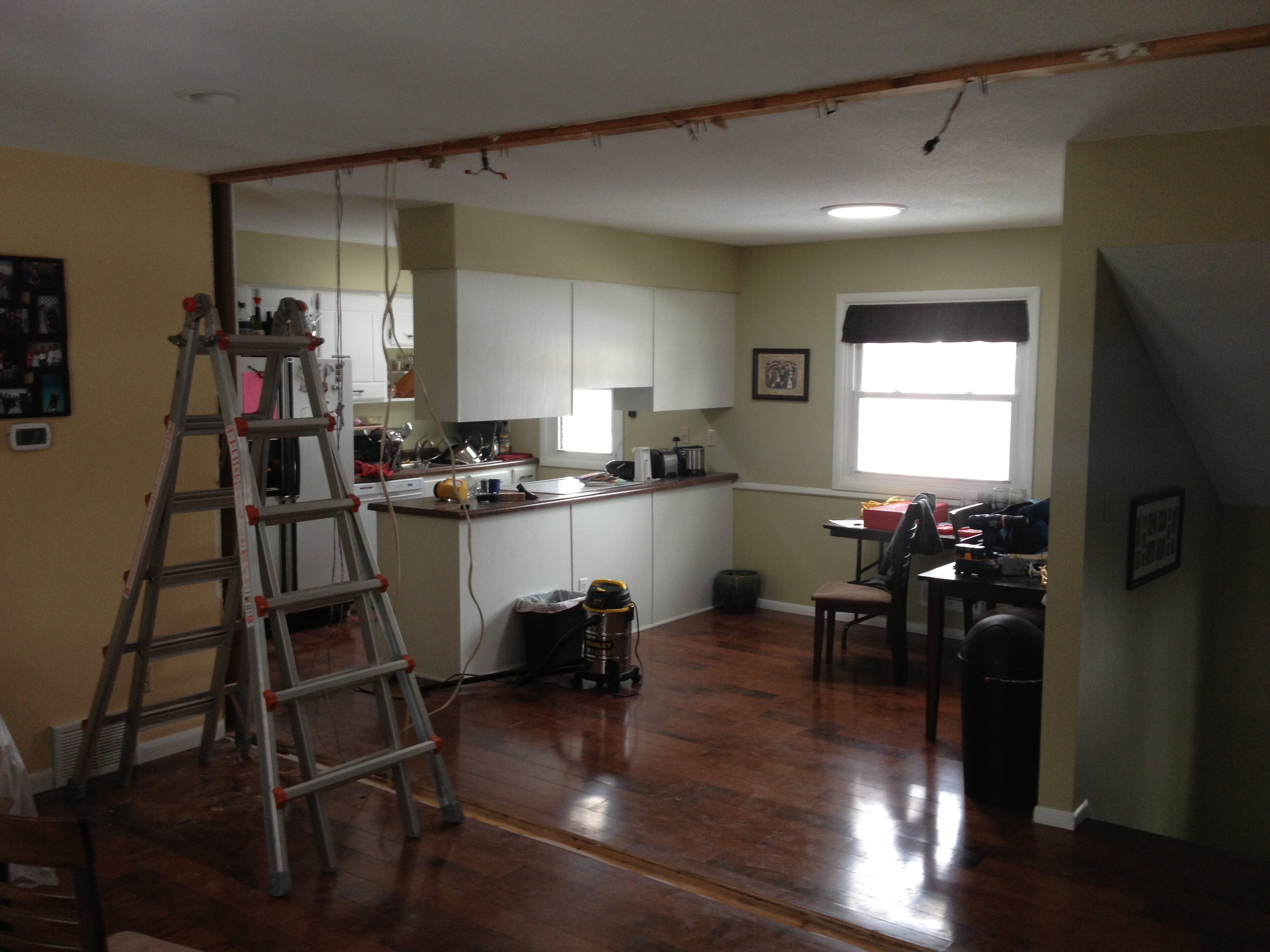 This was the first big project we focused on. My one deal breaker when searching for a home was a big kitchen…well this home had an alley kitchen and if you don’t know what that is….it’s a very small kitchen! But there was huge potential for a big kitchen and open concept for the main living spaces so that was our first focus! With the help of my dad, step-dad, and a few special family friends, we did everything on our own! And for the supplies like the new cabinets and countertops, we order those through Home Depot!